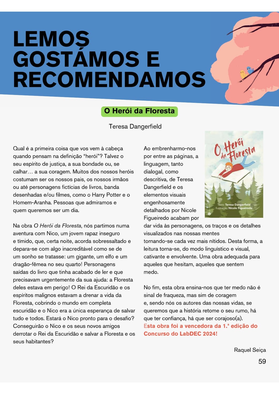 Foi com enorme alegria que soube que O Herói da Floresta, anunciado como vencedor desse concurso em janeiro de 2024, integrou o Top 5 dos Livros Juvenis do Ano de 2024, também editados pela Trinta-Por-Uma-Linha.